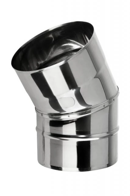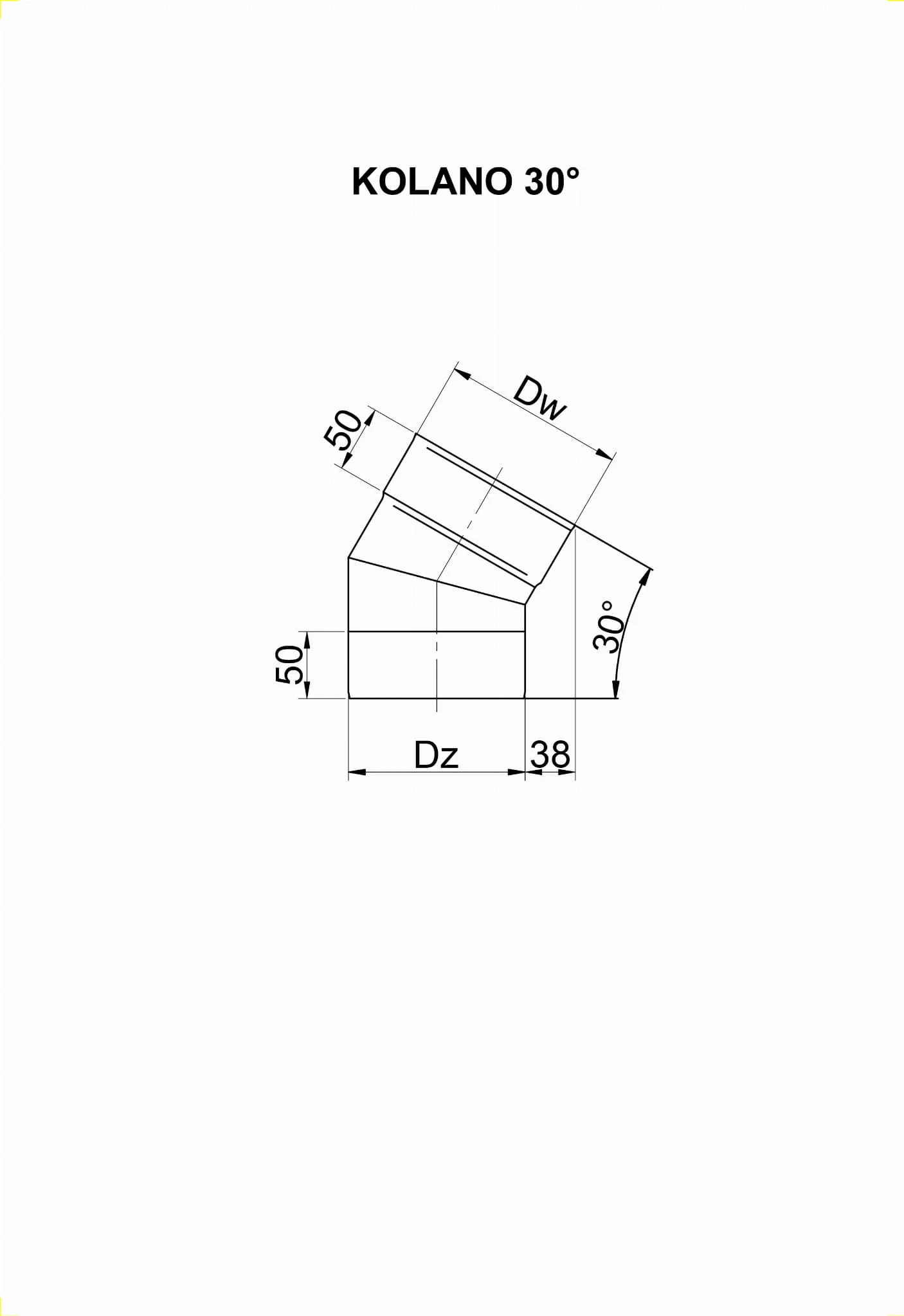 Element z wysokiej jakości blachy żaroodpornej o grubości 1 mm, łączy wkład kominowy pod kątem 30°