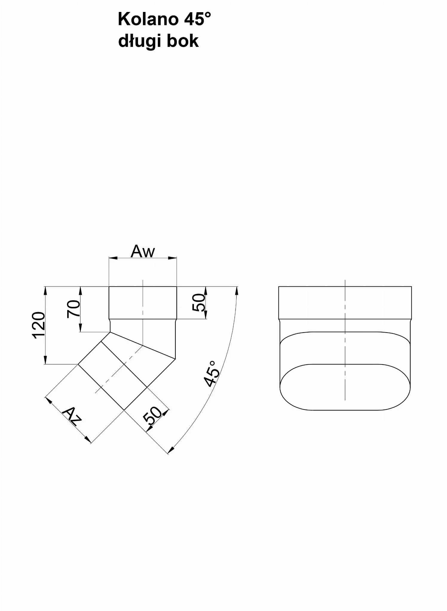 Kolano 45° Długi Bok Owalne Kwasoodporne