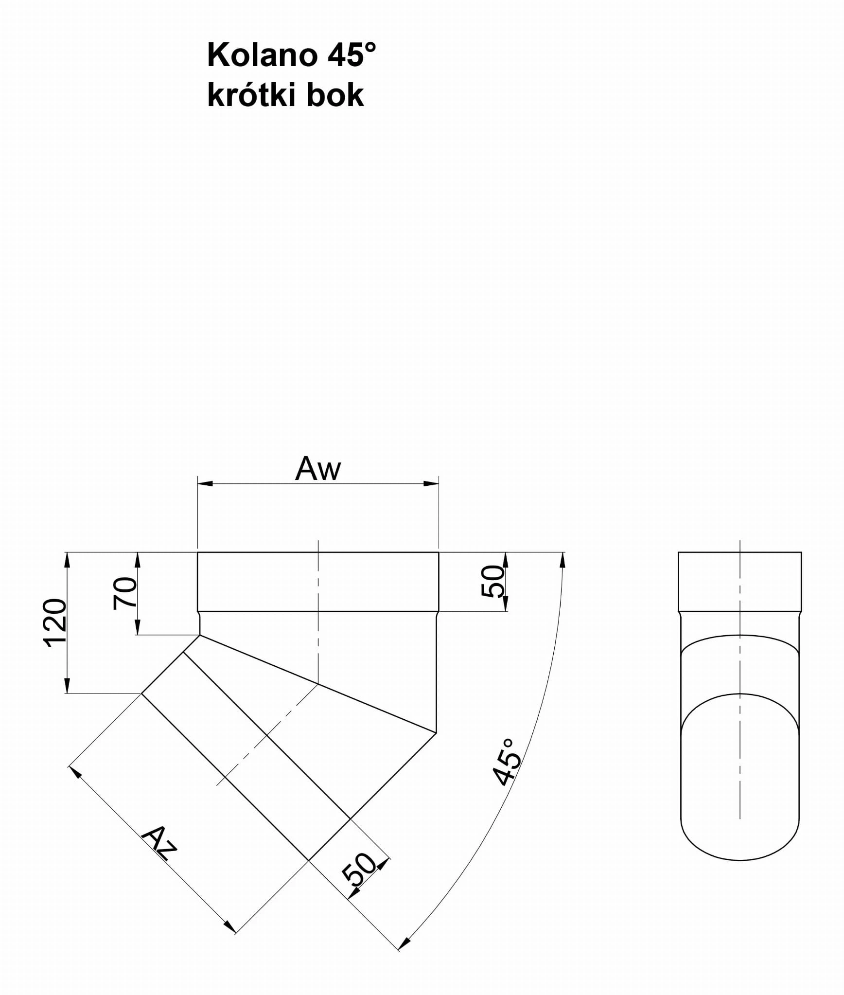Kolano 45° Krótki Bok Owalne Kwasoodporne