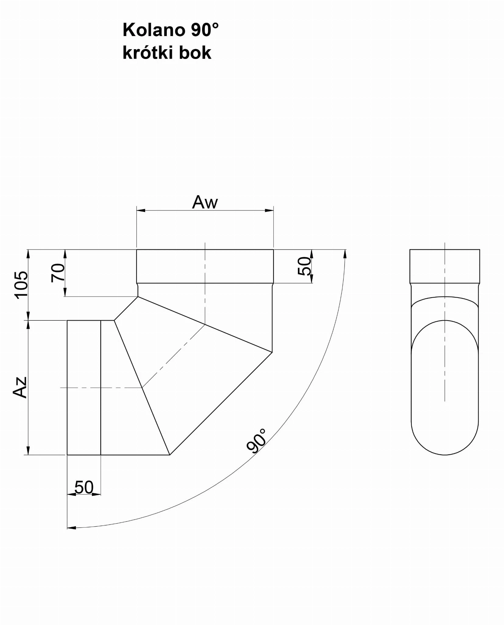 Kolano 90° Krótki Bok Owalne Kwasoodporne