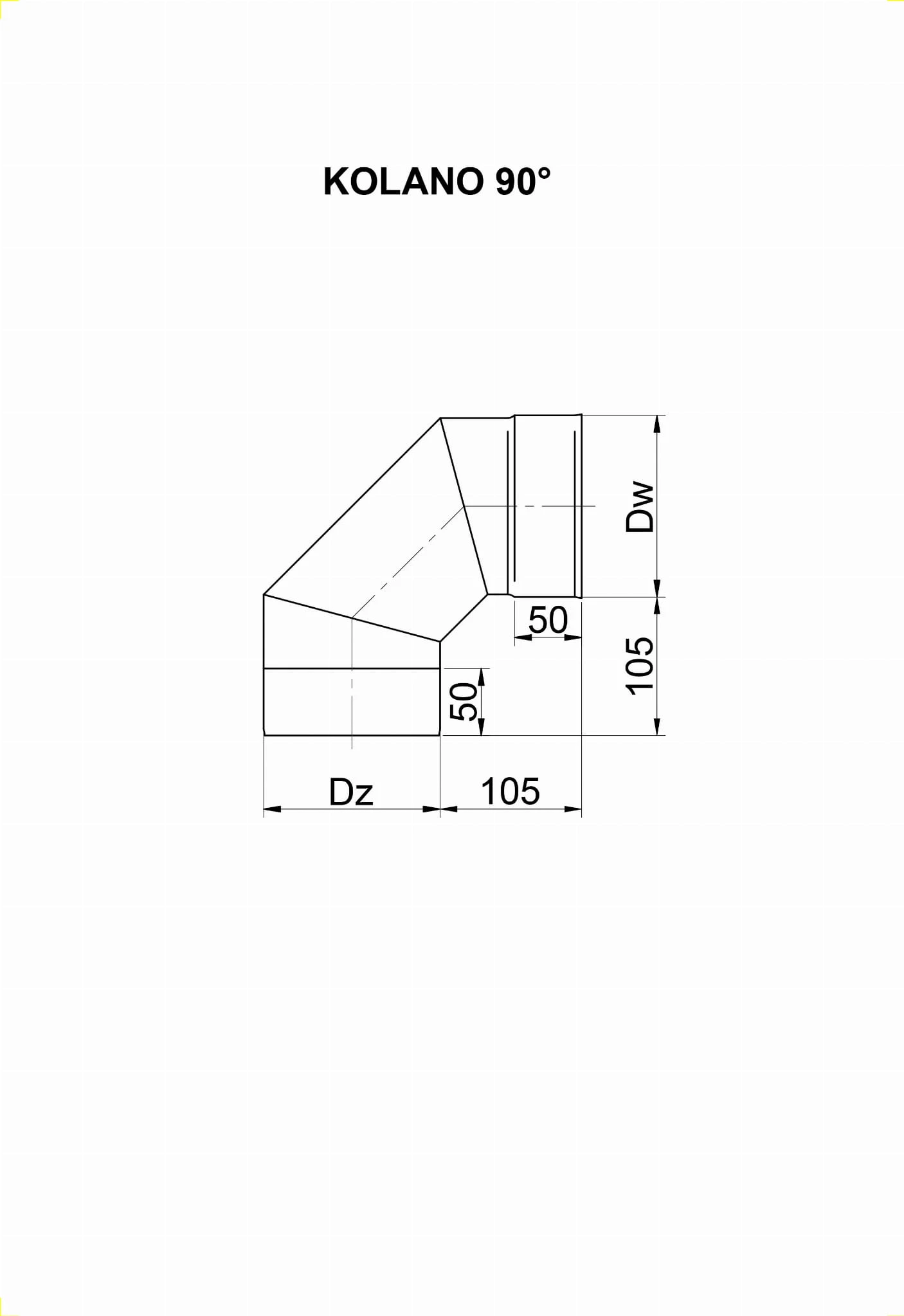 Element z wysokiej jakości blachy żaroodpornej o grubości 1 mm, łączy wkład kominowy pod kątem 90°
