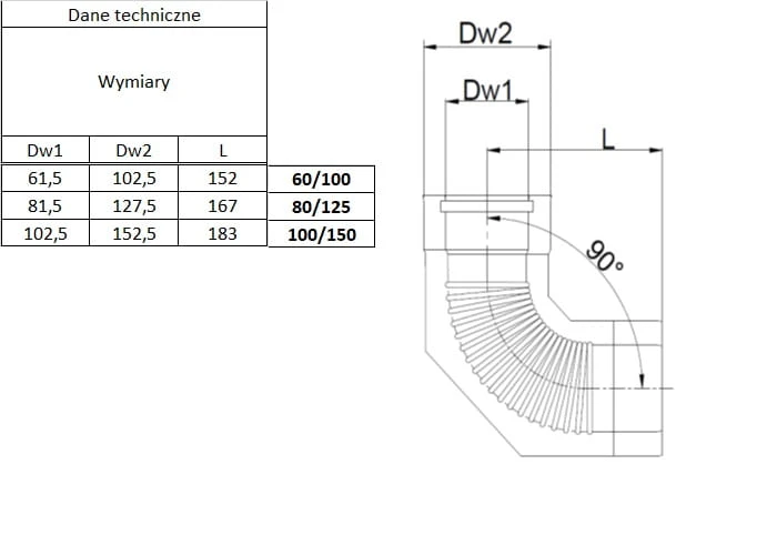 Kolano 90° System Turbo Dwuścienny Kwasoodporne