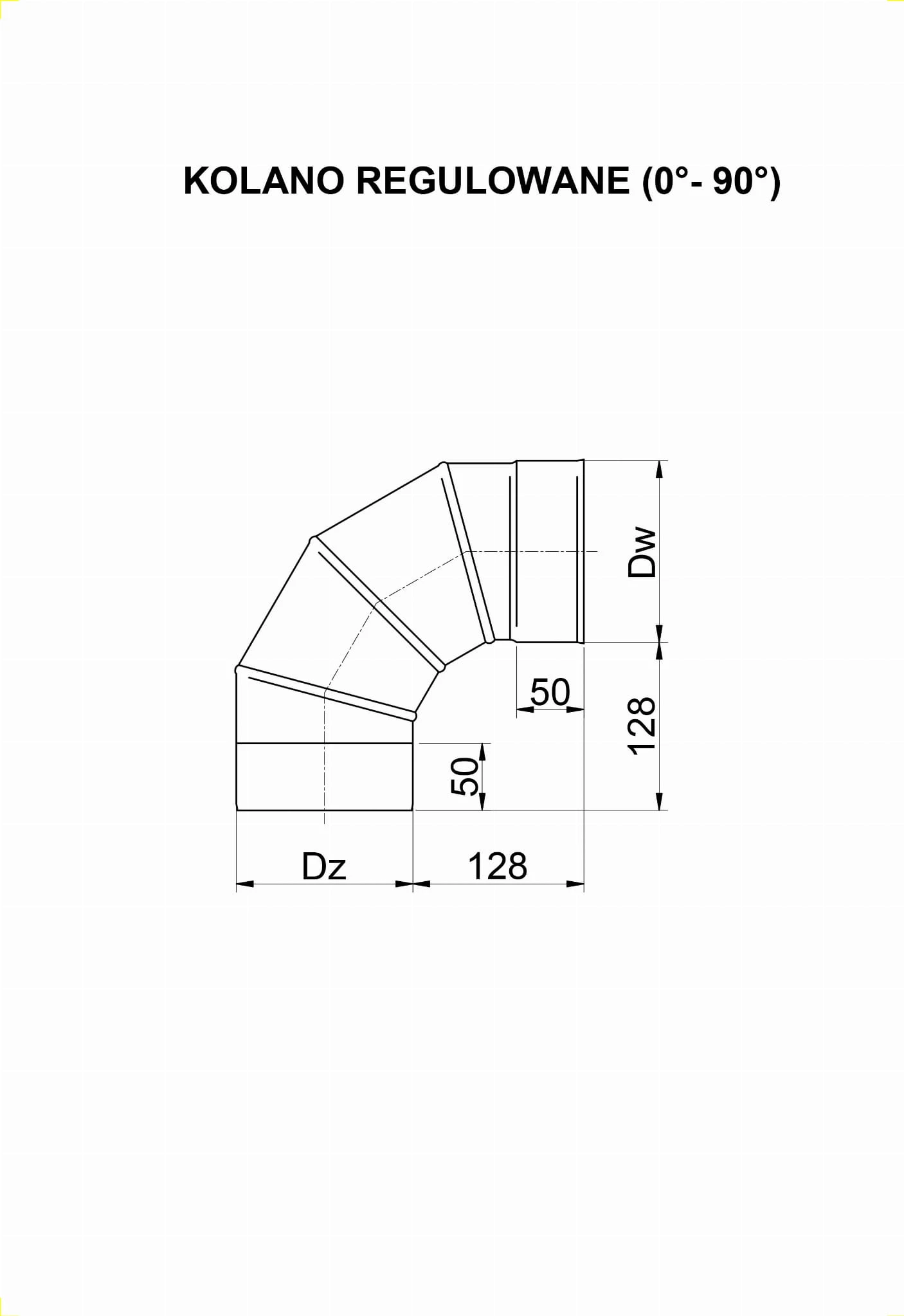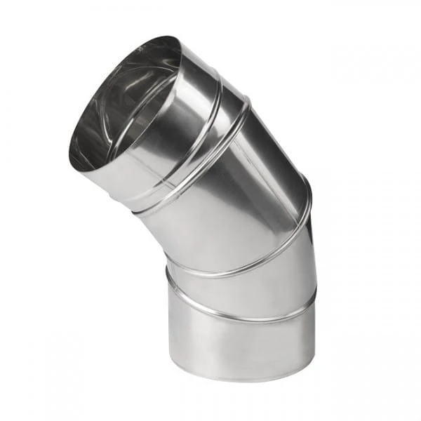 Element z wysokiej jakości blachy żaroodpornej o grubości 1 mm, łączy wkład kominowy pod wybranym kątem