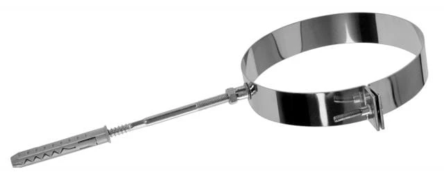 Obejma kwasoodporna do zamocowania elementów system kominowego do muru budynku.