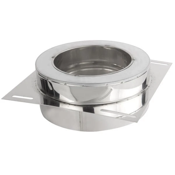 Odskraplacz z płytą do systemu izolowanego. Służy do odprowadzania kondensatu, jednocześnie stanowi podporę komina. W ofercie: - odskraplacz izolowany kwasoodporny - odskraplacz izolowany z płytą kwasoodporny - odskraplacz izolowany z podstawą kwasoodporny Kominy izolowane stosowane są do budowy wolnostojących kominów do odprowadzenia spalin z urządzeń grzewczych opalanych gazem lub olejem opałowym, pracujących w podciśnieniu. Komin wykonany w tej technologii jest konstrukcją samodzielną, nie wymagającą stosowania konwencjonalnych materiałów ceramicznych. Kominy takie są odporne na działanie korozyjne kwaśnego kondensatu, powstającego podczas procesu spalania. Para wodna wykrapla się na chłodnych wewnętrznych ściankach komina i w postaci kondensatu jest odprowadzana przez miskę u dołu komina. Płaszcz wewnętrzny kominów dwuściennych wykonany jest z blach chromoniklowych kwasoodpornych w gatunku 1.4404 wg DIN 17441 o grubości od 0,5 do 0,8 [mm], płaszcz zewnętrzny z blachy kwasoodpornej 1.4301 grubości 0,5 - 0,6 [mm], izolacja termiczna ma grubość od 35 do 50[mm].