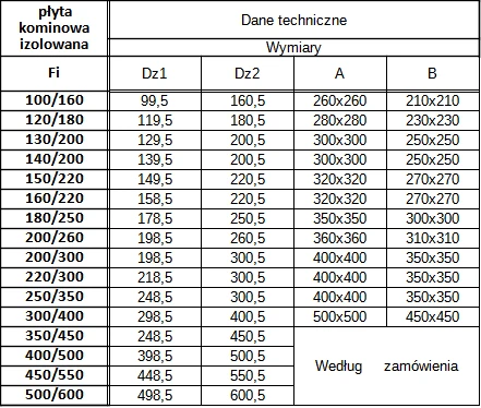 Płyta kominowa do rur izolowanych zabezpiecza przed opadami atmosferycznymi. Kominy izolowane stosowane są do budowy wolnostojących kominów do odprowadzenia spalin z urządzeń grzewczych opalanych gazem lub olejem opałowym, pracujących w podciśnieniu. Komin wykonany w tej technologii jest konstrukcją samodzielną, nie wymagającą stosowania konwencjonalnych materiałów ceramicznych. Kominy takie są odporne na działanie korozyjne kwaśnego kondensatu, powstającego podczas procesu spalania. Para wodna wykrapla się na chłodnych wewnętrznych ściankach komina i w postaci kondensatu jest odprowadzana przez miskę u dołu komina. Płaszcz wewnętrzny kominów dwuściennych wykonany jest z blach chromoniklowych kwasoodpornych w gatunku 1.4404 wg DIN 17441 o grubości od 0,5 do 0,8 [mm], płaszcz zewnętrzny z blachy kwasoodpornej 1.4301 grubości 0,5 - 0,6 [mm], izolacja termiczna ma grubość od 35 do 50[mm].