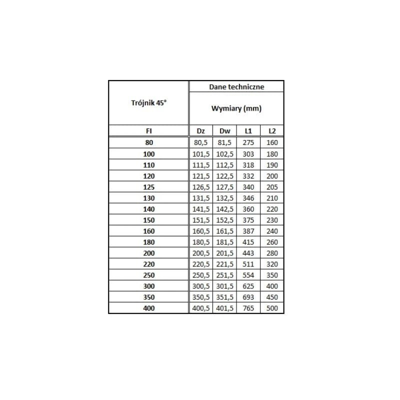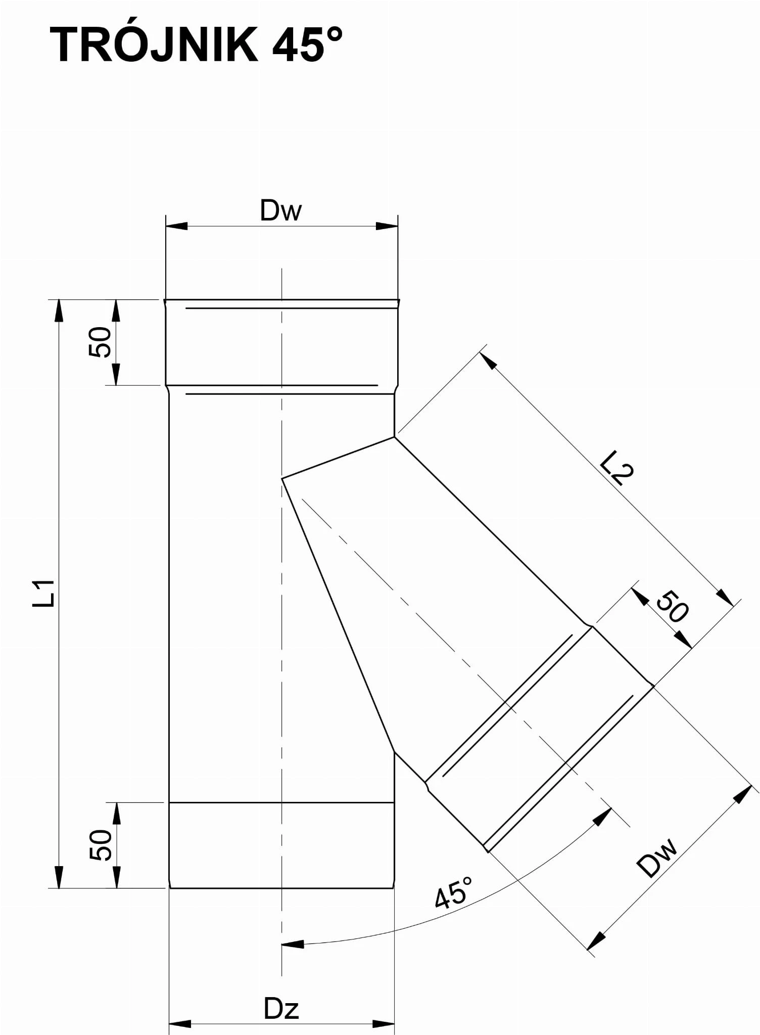 Trójnik 45° Okrągły Kwasoodporny
