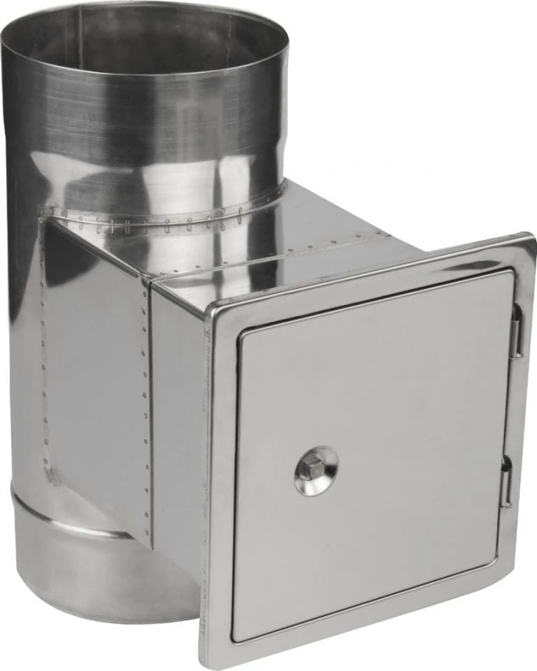 Element z wysokiej jakości blachy kwasoodpornej o grubości 0,6 mm pozwala na szybkie i bezpieczne czyszczenie systemu kominowego. Wraz z dymem do wkładu kominowego dostają się zanieczyszczenia pył oraz sadza, które opadają na dno. Dzięki zaślepce możemy sprawnie i bezpiecznie usunąć nadmiar zebranych zanieczyszczeń.