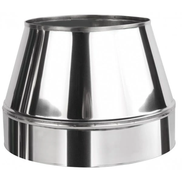 Ustnik kwasoodporny do zakończenia systemu dwuściennego. W ofercie: - ustnik kwasoodporny - ustnik żaroodporny Kominy izolowane stosowane są do budowy wolnostojących kominów do odprowadzenia spalin z urządzeń grzewczych opalanych gazem lub olejem opałowym, pracujących w podciśnieniu. Komin wykonany w tej technologii jest konstrukcją samodzielną, nie wymagającą stosowania konwencjonalnych materiałów ceramicznych. Kominy takie są odporne na działanie korozyjne kwaśnego kondensatu, powstającego podczas procesu spalania. Para wodna wykrapla się na chłodnych wewnętrznych ściankach komina i w postaci kondensatu jest odprowadzana przez miskę u dołu komina. Płaszcz wewnętrzny kominów dwuściennych wykonany jest z blach chromoniklowych kwasoodpornych w gatunku 1.4404 wg DIN 17441 o grubości od 0,5 do 0,8 [mm], płaszcz zewnętrzny z blachy kwasoodpornej 1.4301 grubości 0,5 - 0,6 [mm], izolacja termiczna ma grubość od 35 do 50[mm].